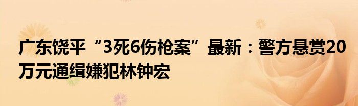 大家好,小安來為大家解答以上的問題廣東饒平“3死6傷槍案”最新:警方懸賞20萬元通緝嫌犯林鐘宏這個很多人還不知道,現(xiàn)在讓我們一起來看看吧!
