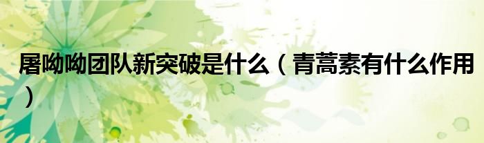 大家好,綜合小編來為大家講解下。屠呦呦團(tuán)隊(duì)新突破是什么,青蒿素有什么作用很多人還不知道,現(xiàn)在讓我們一起來看看吧!
