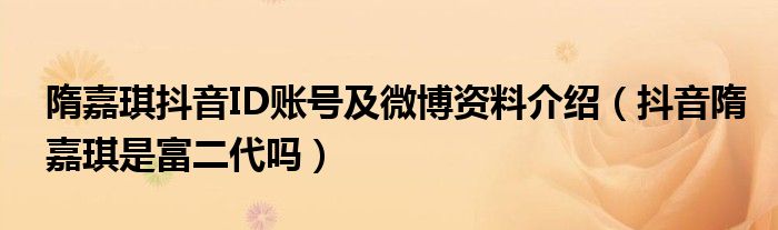 大家好,小安來為大家解答以上的問題隋嘉琪抖音ID賬號及微博資料介紹,抖音隋嘉琪是富二代嗎這個很多人還不知道,現在讓我們一起來看看吧!