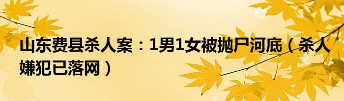 大家好,小安來為大家解答以上的問題山東費縣殺人案:1男1女被拋尸河底,殺人嫌犯已落網這個很多人還不知道,現在讓我們一起來看看吧!