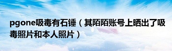 大家好,小安來為大家解答以上的問題pgone吸毒有石錘,其陌陌賬號上曬出了吸毒照片和本人照片這個很多人還不知道,現在讓我們一起來看看吧!
