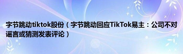 大家好,綜合小編來為大家講解下。字節(jié)跳動(dòng)tiktok股份,字節(jié)跳動(dòng)回應(yīng)TikTok易主:公司不對(duì)謠言或猜測(cè)發(fā)表評(píng)論很多人還不知道,現(xiàn)在讓我們一起來看看吧!
