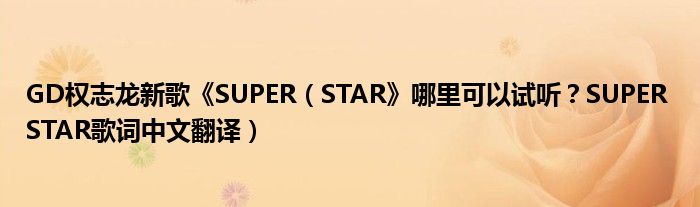 大家好,小安來為大家解答以上的問題GD權志龍新歌《SUPER,STAR》哪里可以試聽?SUPER STAR歌詞中文翻譯這個很多人還不知道,現在讓我們一起來看看吧!