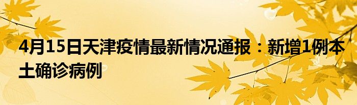 大家好,小安來為大家解答以上的問題4月15日天津疫情最新情況通報:新增1例本土確診病例這個很多人還不知道,現在讓我們一起來看看吧!
