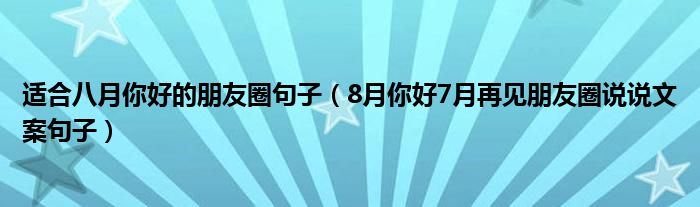 大家好,綜合小編來為大家講解下。適合八月你好的朋友圈句子,8月你好7月再見朋友圈說說文案句子很多人還不知道,現在讓我們一起來看看吧!