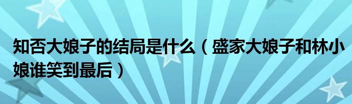 大家好,小安來為大家解答以上的問題知否大娘子的結(jié)局是什么,盛家大娘子和林小娘誰笑到最后這個(gè)很多人還不知道,現(xiàn)在讓我們一起來看看吧!