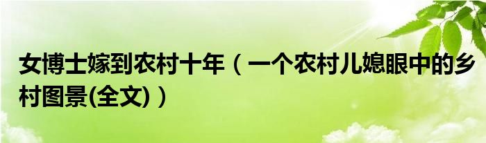 大家好,小安來為大家解答以上的問題女博士嫁到農(nóng)村十年,一個(gè)農(nóng)村兒媳眼中的鄉(xiāng)村圖景(全文)這個(gè)很多人還不知道,現(xiàn)在讓我們一起來看看吧!