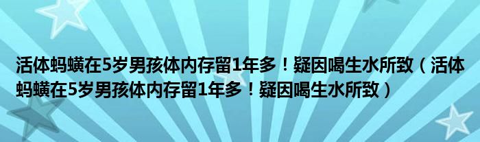 大家好,綜合小編來為大家講解下。活體螞蟥在5歲男孩體內存留1年多!疑因喝生水所致,活體螞蟥在5歲男孩體內存留1年多!疑因喝生水所致很多人還不知道,現在讓我們一起來看看吧!