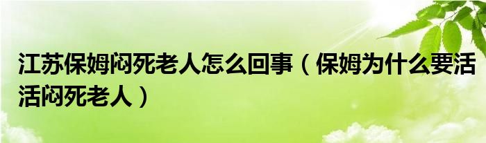 大家好,綜合小編來為大家講解下。江蘇保姆悶死老人怎么回事,保姆為什么要活活悶死老人很多人還不知道,現在讓我們一起來看看吧!