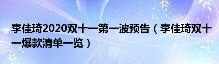 大家好,綜合小編來為大家講解下。李佳琦2020雙十一第一波預告,李佳琦雙十一爆款清單一覽很多人還不知道,現(xiàn)在讓我們一起來看看吧!