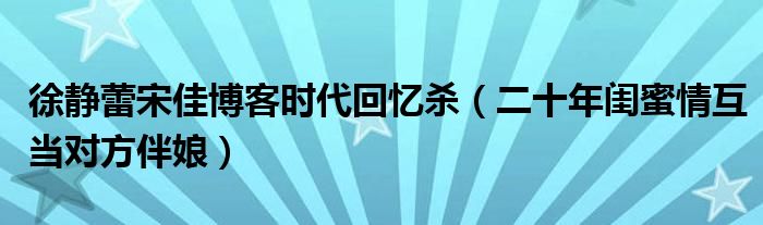 大家好,小安來為大家解答以上的問題徐靜蕾宋佳博客時(shí)代回憶殺,二十年閨蜜情互當(dāng)對方伴娘這個(gè)很多人還不知道,現(xiàn)在讓我們一起來看看吧!