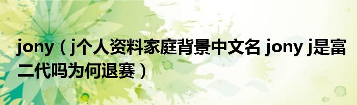 大家好,小安來為大家解答以上的問題jony,j個(gè)人資料家庭背景中文名 jony j是富二代嗎為何退賽這個(gè)很多人還不知道,現(xiàn)在讓我們一起來看看吧!