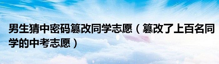 大家好,綜合小編來為大家講解下。男生猜中密碼篡改同學志愿,篡改了上百名同學的中考志愿很多人還不知道,現在讓我們一起來看看吧!