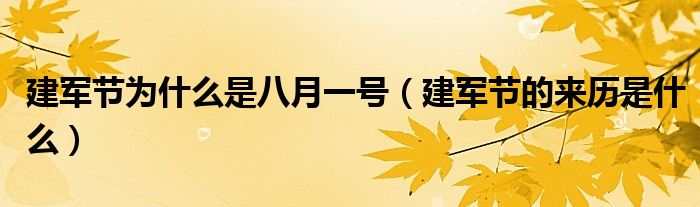 建軍節為什么是八月一號,建軍節是八月一日原因