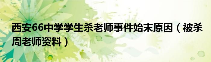 大家好,小安來為大家解答以上的問題西安66中學學生殺老師事件始末原因,被殺周老師資料這個很多人還不知道,現在讓我們一起來看看吧!