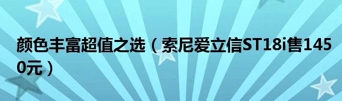 大家好,小安來為大家解答以上的問題顏色豐富超值之選,索尼愛立信ST18i售1450元這個很多人還不知道,現在讓我們一起來看看吧!