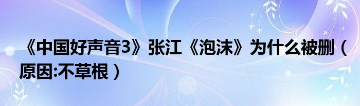 大家好,小安來為大家解答以上的問題《中國好聲音3》張江《泡沫》為什么被刪,原因:不草根這個很多人還不知道,現(xiàn)在讓我們一起來看看吧!