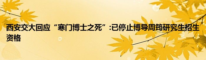 大家好,小安來為大家解答以上的問題西安交大回應“寒門博士之死”:已停止博導周筠研究生招生資格這個很多人還不知道,現在讓我們一起來看看吧!