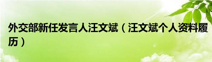 大家好,綜合小編來為大家講解下。外交部新任發(fā)言人汪文斌,汪文斌個人資料履歷很多人還不知道,現(xiàn)在讓我們一起來看看吧!