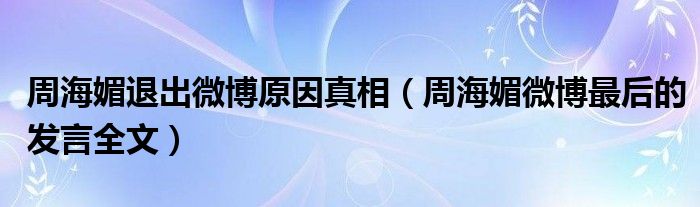 周海媚退出微博原因真相 周海媚微博最后的發言全文
