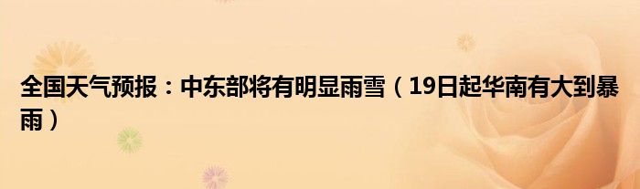 大家好,小安來為大家解答以上的問題全國天氣預(yù)報(bào):中東部將有明顯雨雪,19日起華南有大到暴雨這個(gè)很多人還不知道,現(xiàn)在讓我們一起來看看吧!