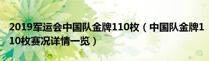 大家好,小安來為大家解答以上的問題2019軍運會中國隊金牌110枚,中國隊金牌110枚賽況詳情一覽這個很多人還不知道,現在讓我們一起來看看吧!