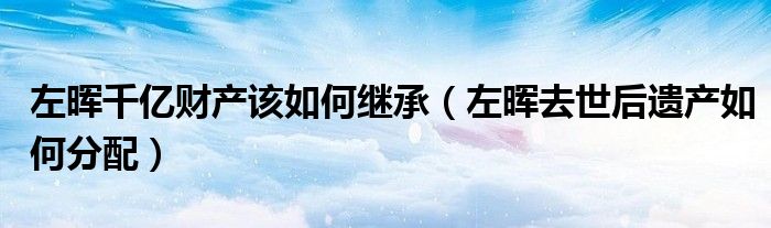 大家好,綜合小編來為大家講解下。左暉千億財(cái)產(chǎn)該如何繼承,左暉去世后遺產(chǎn)如何分配很多人還不知道,現(xiàn)在讓我們一起來看看吧!