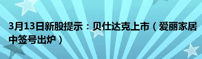大家好,小安來(lái)為大家解答以上的問(wèn)題3月13日新股提示:貝仕達(dá)克上市,愛(ài)麗家居中簽號(hào)出爐這個(gè)很多人還不知道,現(xiàn)在讓我們一起來(lái)看看吧!