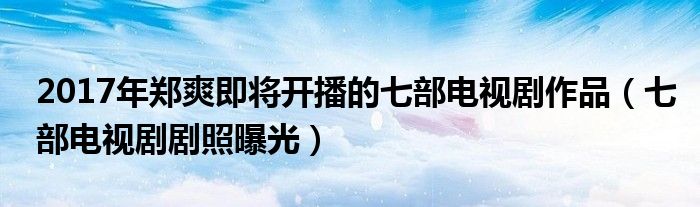 大家好,小安來為大家解答以上的問題2017年鄭爽即將開播的七部電視劇作品,七部電視劇劇照曝光這個很多人還不知道,現在讓我們一起來看看吧!