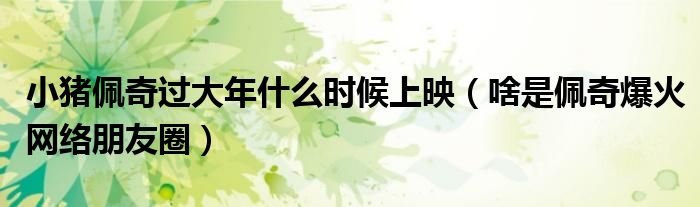 大家好,綜合小編來(lái)為大家講解下。小豬佩奇過(guò)大年什么時(shí)候上映,啥是佩奇爆火網(wǎng)絡(luò)朋友圈很多人還不知道,現(xiàn)在讓我們一起來(lái)看看吧!