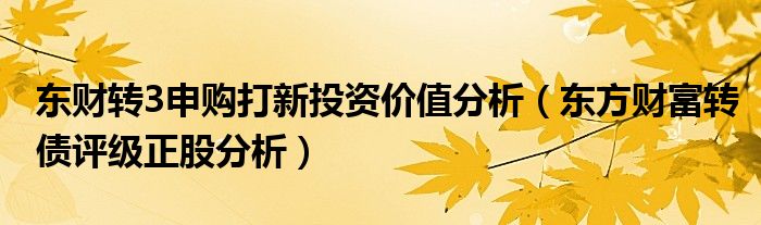 東財轉3申購打新投資價值分析: