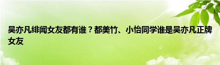 大家好,小安來為大家解答以上的問題吳亦凡緋聞女友都有誰?都美竹、小怡同學誰是吳亦凡正牌女友這個很多人還不知道,現在讓我們一起來看看吧!