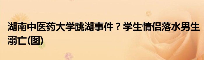 大家好,小安來為大家解答以上的問題湖南中醫藥大學跳湖事件?學生情侶落水男生溺亡(圖)這個很多人還不知道,現在讓我們一起來看看吧!