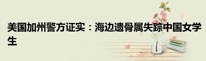 大家好,小安來為大家解答以上的問題美國加州警方證實:海邊遺骨屬失蹤中國女學生這個很多人還不知道,現在讓我們一起來看看吧!