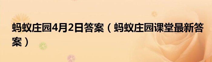 大家好,綜合小編來為大家講解下。螞蟻莊園4月2日答案,螞蟻莊園課堂最新答案很多人還不知道,現在讓我們一起來看看吧!