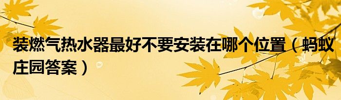 大家好,小安來為大家解答以上的問題裝燃氣熱水器最好不要安裝在哪個位置,螞蟻莊園答案這個很多人還不知道,現(xiàn)在讓我們一起來看看吧!