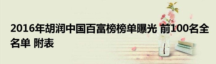 大家好,小安來為大家解答以上的問題2016年胡潤中國百富榜榜單曝光,前100名全名單,附表這個很多人還不知道,現在讓我們一起來看看吧!