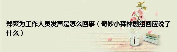 大家好,小安來為大家解答以上的問題鄭爽為工作人員發(fā)聲是怎么回事,奇妙小森林劇組回應(yīng)說了什么這個很多人還不知道,現(xiàn)在讓我們一起來看看吧!