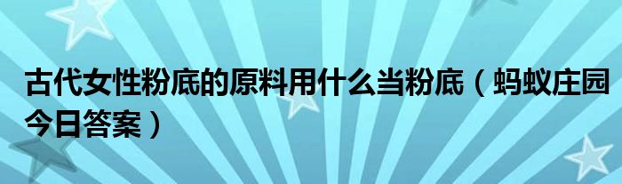 大家好,小安來為大家解答以上的問題古代女性粉底的原料用什么當粉底,螞蟻莊園今日答案這個很多人還不知道,現在讓我們一起來看看吧!