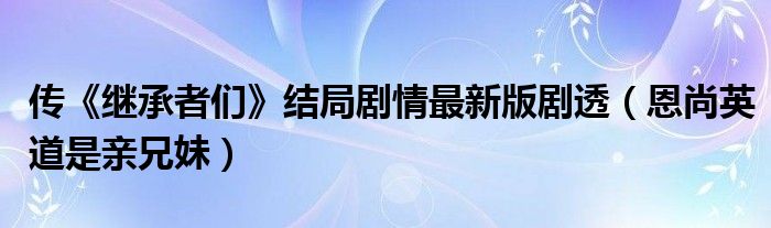 大家好,小安來為大家解答以上的問題傳《繼承者們》結(jié)局劇情最新版劇透,恩尚英道是親兄妹這個(gè)很多人還不知道,現(xiàn)在讓我們一起來看看吧!