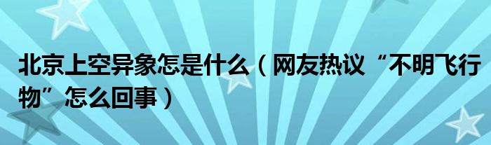 大家好,綜合小編來為大家講解下。北京上空異象怎是什么,網友熱議“不明飛行物”怎么回事很多人還不知道,現在讓我們一起來看看吧!