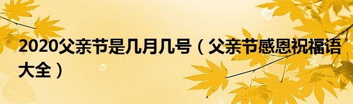 大家好,綜合小編來(lái)為大家講解下。2020父親節(jié)是幾月幾號(hào),父親節(jié)感恩祝福語(yǔ)大全很多人還不知道,現(xiàn)在讓我們一起來(lái)看看吧!