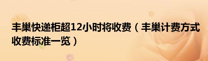大家好,綜合小編來為大家講解下。豐巢快遞柜超12小時將收費,豐巢計費方式收費標準一覽很多人還不知道,現在讓我們一起來看看吧!