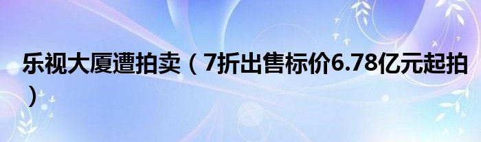 大家好,綜合小編來為大家講解下。樂視大廈遭拍賣,7折出售標價6.78億元起拍很多人還不知道,現在讓我們一起來看看吧!
