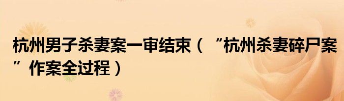 大家好,小安來為大家解答以上的問題杭州男子殺妻案一審結束,“杭州殺妻碎尸案”作案全過程這個很多人還不知道,現在讓我們一起來看看吧!
