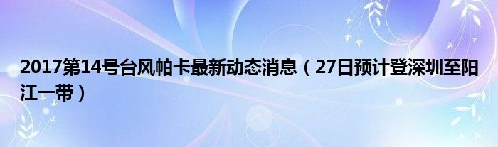 大家好,小安來為大家解答以上的問題2017第14號臺風帕卡最新動態消息,27日預計登深圳至陽江一帶這個很多人還不知道,現在讓我們一起來看看吧!