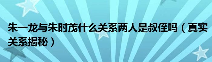 大家好,小安來為大家解答以上的問題朱一龍與朱時茂什么關系兩人是叔侄嗎,真實關系揭秘這個很多人還不知道,現在讓我們一起來看看吧!