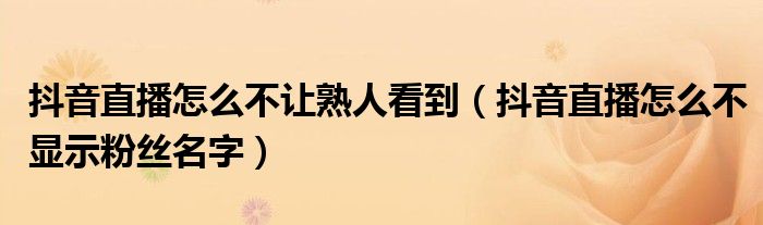 大家好,小安來為大家解答以上的問題抖音直播怎么不讓熟人看到,抖音直播怎么不顯示粉絲名字這個很多人還不知道,現在讓我們一起來看看吧!