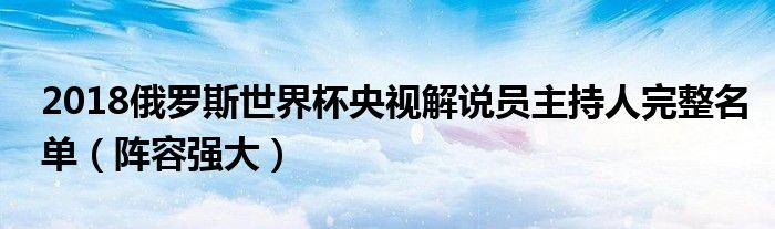 大家好,綜合小編來為大家講解下。2018俄羅斯世界杯央視解說員主持人完整名單,陣容強大很多人還不知道,現在讓我們一起來看看吧!
