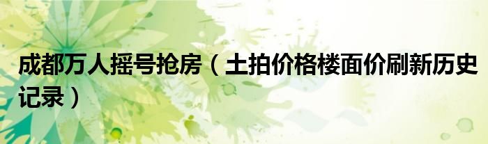 大家好,綜合小編來為大家講解下。成都萬人搖號搶房,土拍價格樓面價刷新歷史記錄很多人還不知道,現在讓我們一起來看看吧!